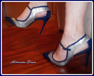 Os traigo mis zapatos. También los tunee porque quería tipo a los de salón de baile, pero en azul y plata y además con tacón fino y alto y pulsera. Vamos, que lo tenía muy claro. Tan claro que no los encontré ni parecidos. Que el azul se llevó el año pasado jajaj